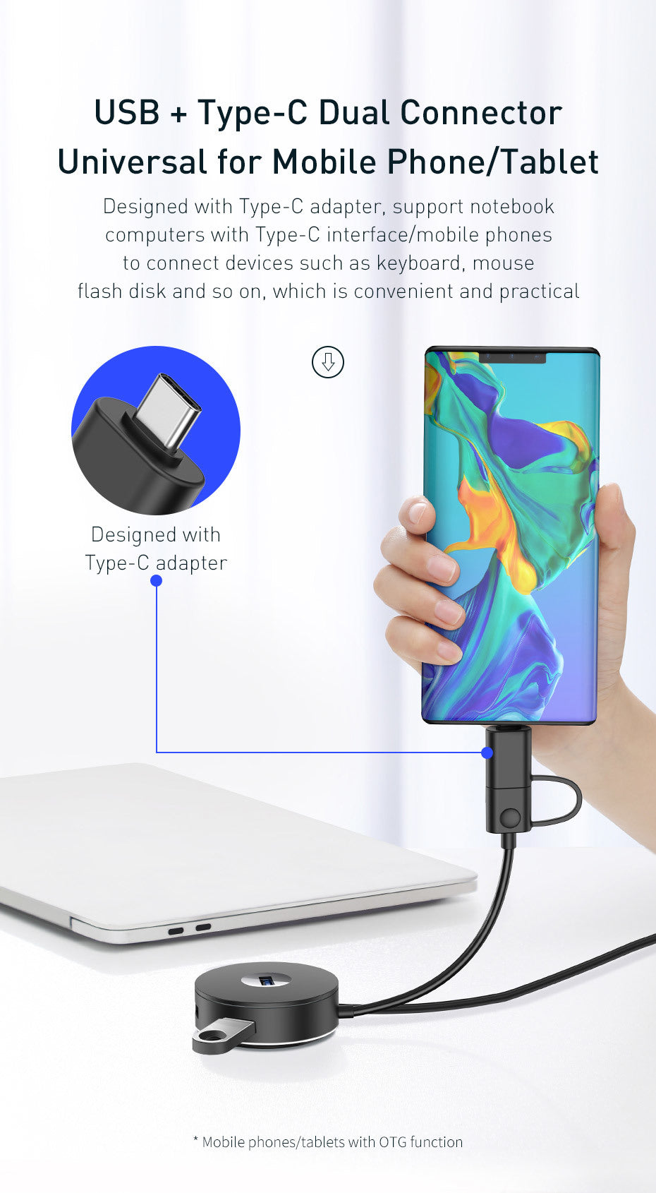 USB-C HUB For Portable Hard Drives Flash Drive Mouse Keyboard USB Fan