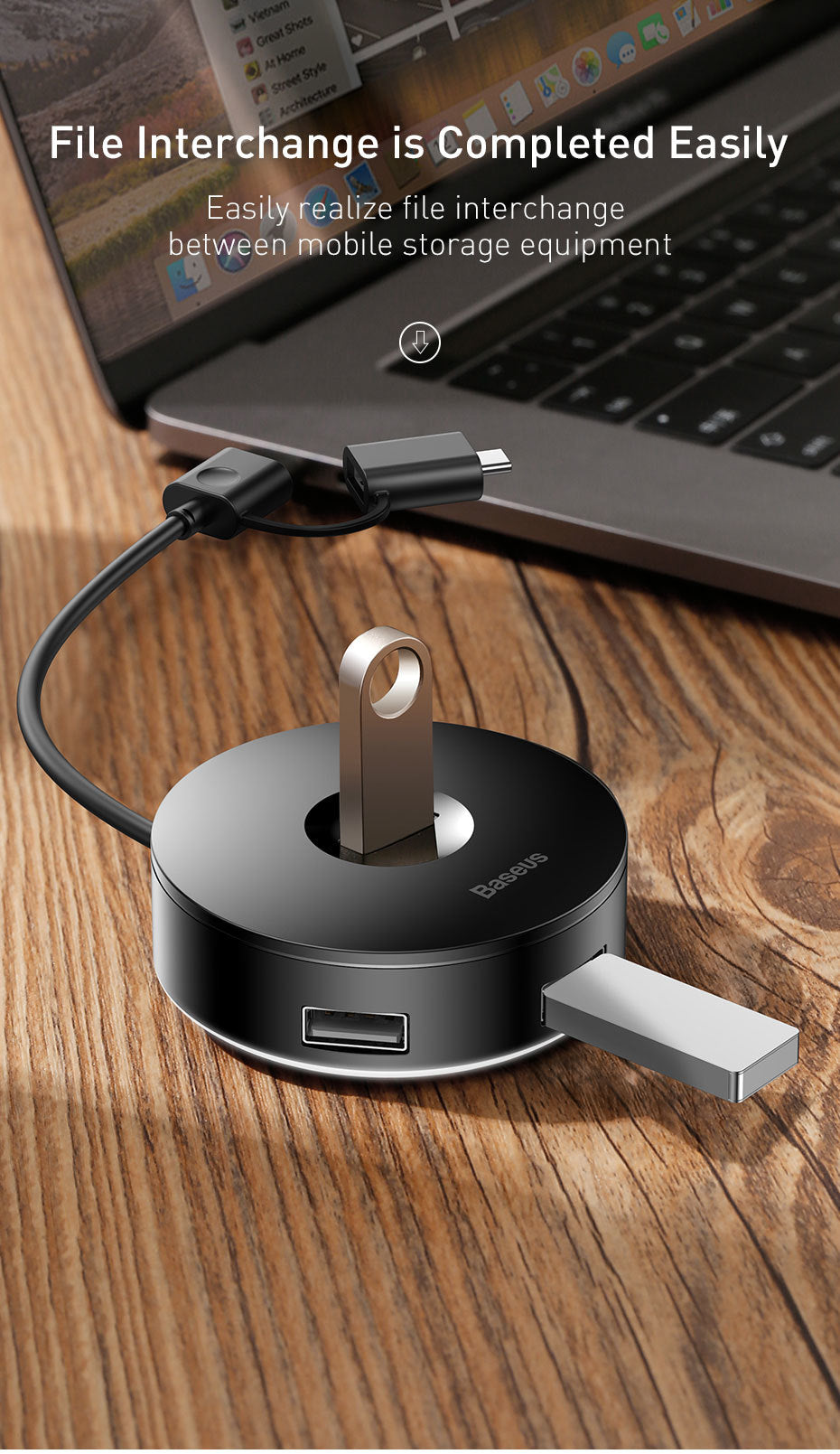 Four ports means no more fighting over the last remaining charger in the house. Sharing means caring!Easy file transfer: want to transfer some photos from your smartphone to your laptop? This USB hub has got your back.